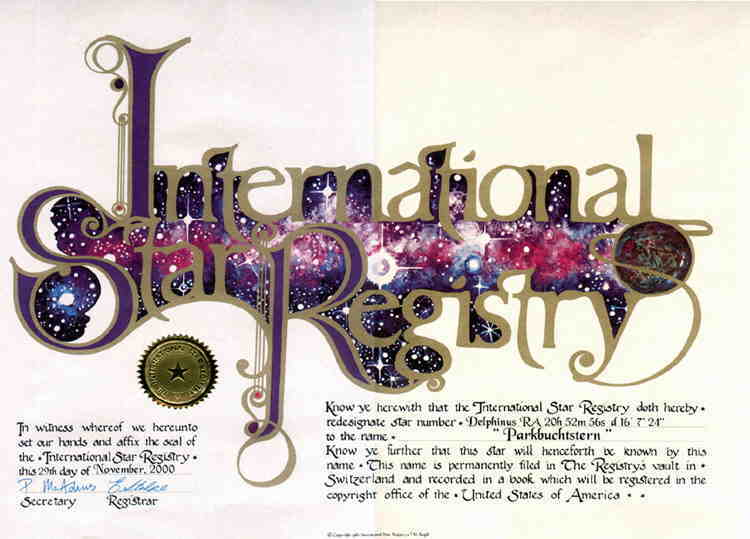 Unser Stern wurde am 29.11.2000 getauft, und zwar ist